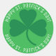 Celebrate St. Patrick's Day with stickers featuring a green shamrock on a lighter green background surrounded by "Happy St. Patrick's Day" in white.