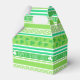 St Patrick's Day green stripe pattern gift wrap, party favour boxes, ribbon, tissue paper and more gift wrapping accessories for a festive holiday! This striped pattern has several shades of green, white polka dots, Irish shamrocks and a Happy St Patrick's Day message. It's a cute graphic design that's perfect for kids and adults!