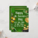 Send heartfelt holiday wishes with this elegant St. Patrick's Day greeting card. The front features a festive green design with golden barrels, pots of gold, and shamrocks alongside the message, "May the Luck of the Irish be with you!"