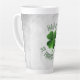 Enjoy your morning coffee or latte with a festive Happy St. Patrick's Day Latte Mug. Latte mug design features a green shamrock with the saying "Happy St. Patrick's Day" in modern grunge typography.