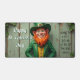 A smiling leprechaun in traditional green garb with a broad smile spreads good cheer. The rustic wooden wall in the background, decorated with shamrocks and a heartfelt Irish saying, lends the motif a festive and charming atmosphere. Perfect for St. Patrick's Day greetings and decorations.