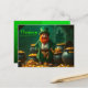 Cute Leprchaun in a cave with gold (illustration by AI - model n°1). Design on holiday postcard with Irish quote and greeting to personalise in the back.