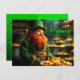 Cute Leprchaun in a cave with gold (illustration by AI - model n°5). Design on holiday postcard with Irish quote and greeting to personalise in the back.
