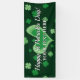 Happy St. Patrick's Day party banner with clovers. Add your own custom text. Cheerful design with script typography template. Personalised decorations for festive party. Great for office, work, school, home, business etc. Green shamrocks with big heart. Irish pride design. Hang this sign up anywhere.