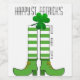 Green and white striped socks, shoes and a clover.