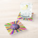 Bold, colourful stripes create a lively and uplifting background, while a matching striped sphere sits at the centre like a playful focal point.