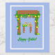 You see a succot drawing, cartoon style. A garden leave decorated with lemons.