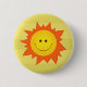 Cute button with a happy smiling sun on green striped background. This cheerful sun button will show the world what sunshine-y person you are. Great for lovely kids and for grown-up children, too. :)