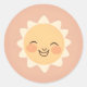 This sticker displays a delightful depiction of a cheerful yellow sun against a soft peach background. The sun radiates warmth and happiness with its bright, smiling face and outstretched rays. Set against the gentle backdrop of peach, the sun exudes a sense of tranquillity and positivity, evoking the feeling of a peaceful sunrise or a perfect summer day. Whether adorning a notebook, water bottle, or laptop, this sticker brings a touch of joy and sunshine wherever it goes, spreading smiles and brightening up any space with its sunny disposition.