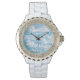 An all over print scene of happy sunny clouds soft baby blue sky all over print background custom fashion watch gift for yourself or for someone special on your list, sure to make an impression on any occasions. Personalize it with text and a monogram.
