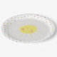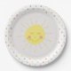 Sunshine, rays, smile, happy clouds and pastel sorbet coloured polkadots feature on this disposable party paper plate for picnic, children's parties or soirees, st patricks day, first birthday, kid party, baby shower, bridal shower, adult party 30th birthday, 40th birthday,