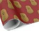 Funny food wrapping paper. A repeat pattern of a cute happy cartoon brown potato with a big smile on his face on a background colour of deep red.