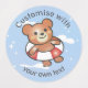 Adorable smiley teddy on holiday. Custom text waterproof stickers great for kids pool parties and holiday clubs.
