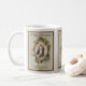 Beautiful Happy Thanksgiving mug with Scripture Quote and Catholic art of the Blessed Virgin Mary, the Assumption of Mary and the angels.