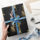 Happy Thanksgiving! Chic Lettering Text Pattern Typography Elegant Black and Gold Faux Gold Foil Text Glossy Gift Wrapping Paper Thanksgiving Gifts