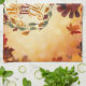 Happy Thanksgiving Cute Turkey and Autumn Leaves Tea Towel