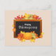 Happy Thanksgiving day autumn leaves and pumpkin Holiday Postcard
