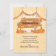 A Happy Thanksgiving Day message printed on wood with a streamer canopy and pumpkins. The card is easy to customise with your wording, font, font colour, paper shape options and choice of six paper types.