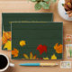 Personalised Thanksgiving envelope design featuring the text "Happy Thanksgiving" written on a green wood background with colourful foliage. The text is fully customisable. To change it use the Personalise option. For more changes, such as changes to the font, font colour or text layout, use the Edit design tool option.