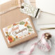 This gorgeous business Thanksgiving sticker features a lovely border of watercolor fall leaves and autumnal flowers around your elegant cursive HAPPY THANKSGIVING message. Customise with your company name in light brown amidst the orange and yellow earth tones of these corporate holiday marketing gift labels.