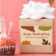 Do you need to label gifts that you give your clients for Thanksgiving. A custom Thanksgiving sticker lets your customer know who the gift is from. Happy Thanksgiving is above text for your business name. Fall leaves surround the text to form a beautiful palette of autumn colours such as orange, green, and brown. The sticker is beige. All text can be edited or deleted.
