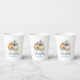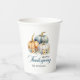 Elegant watercolor thanksgiving paper cups. Blue teal, gold orange, white colours with three pumpkins and flowers arrangement. Perfect for that rustic fall autumn holiday season. Invite your family, friends, co-workers, neighbours, guests...Personalised, editable. See the 'FALL IN LOVE Blue Gold orange pumpkins' collection for other items.