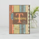 Striped Thanksgiving Card. A pretty combination of fall colors including light pumpkin, gray blue, yellow, and brown. There is a cute blue file folder tab on the edge of the paper that has a large T and says Thanksgiving. Some pretty dark brown scrollwork finishes off the card. The card is appropriate for friends or family. Could work as an invitation to Thanksgiving dinner or a fall celebration. Warm tones and creative stripes make this unique card very attractive.