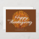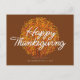 simple script lettering happy thanksgiving holiday card with fall tree leaves. The text and back colour can be personalised.