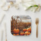 These autumn paper plates feature a cornfield with pumpkins.