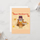 A bird in a hat holding a thanksgiving pie. This design looks really effective on these Invitations