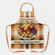 This Thanksgiving apron design features a festive plaid background in warm autumn tones of orange, beige, and black. At the centre, there's a detailed illustration of a traditional Thanksgiving feast, with a roasted turkey surrounded by garnishes, potatoes, and grapes. The customisable text above the image reads "Chef [Name]" (example: Chef Johnson), and below, it says "Happy Thanksgiving!!!" in a classic serif font. This apron combines both rustic charm and holiday cheer, making it a great gift for the family chef or anyone hosting the Thanksgiving feast.