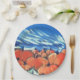 Happy Thanksgiving plate showing a harvest folk art scene of a pumpkin patch. With bold a bold blue and white sky, this item has autumn colours of green and orange. A great addition to your Thanksgiving dinner.