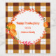 Happy Thanksgiving Pumpkin Plaid Brown White Wine Label