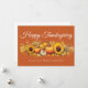 This orange company holiday card features a vintage drawing of pumpkins, fall leaves, and cute autumn sunflowers. Nostalgic Happy Thanksgiving cards with brown script of your business name and personalised professional message on the back for clients and friends.