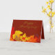 Thanksgiving holiday greeting card with red and orange leaves. "Happy Thanksgiving" greeting on the front in modern, handwriting script, is yellow over brown. Inside customise with your personal greeting and signature. This card comes in three sizes.