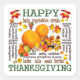 A unique, colourful Thanksgiving Day sticker, with pumpkins and other seasonal produce and fall leaves.