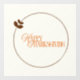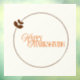 Happy Thanksgiving text with brown leaf circle frame on grey background.
