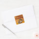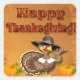 Happy Thanksgiving Turkey Envelope Seals features a sepia abstract leaf background. The bottom features a cartoon turkey with a pilgrim hat, two pumpkins on vines. Stylised orange and black text is Happy Thanksgiving. Matches our Greeting Cards, Postcards and Postage. Perfect for Thanksgiving mailings.