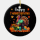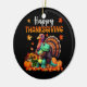 Happy Thanksgiving Turkey Hugging Dinosaur Friends Ceramic Ornament