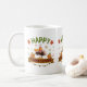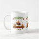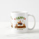 happy thanksgiving turkey holding a pie with pumpkins mug