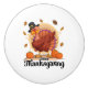 Happy Thanksgiving typography with a Turkey, autumn leaves and pumpkins, to celebrate thanksgiving and be thankful for everything.