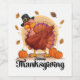 Happy Thanksgiving typography with a Turkey, autumn leaves and pumpkins, to celebrate thanksgiving and be thankful for everything.