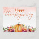 Happy Thanksgiving Watercolor Pumpkin and Flowers Holiday Postcard