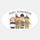 Happy Thanksgiving with Pilgrims and Indians Oval Sticker