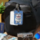 An Adorable Happy Bulldog Cartoon Themed Luggage Tag In Blue For Travelling
