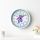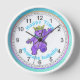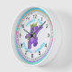 Happy time Princess Bear kicking up her heals in joy. Fanciful crowned princess teddy bear for cool fun time. Bright purple fur sets off accessories including a pretty golden crown and delicate pink wrist flower. A precious jewelled crown on girl princess. Name and other text may be personalised using the template provided. Cool aqua border with seconds numbers. Custom name and text. Cute time for girls. Dancing purple princess teddy bear. Original design by Anura Design Studio.