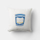 Throw pillow features a classic NYC deli-style blue Greek coffee cup with "We are happy to serve you" emblazoned across the front. Created from an original marker illustration.