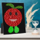 This awesome plaque features a cute cartoon of a smiling tomato with black eyes, pink mouth and cute little green feet.