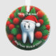 This cute tooth wears a Santa cap and smiles over a red and green background.