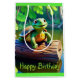 This birthday gift bag features a cute happy turtle sunning on a log.